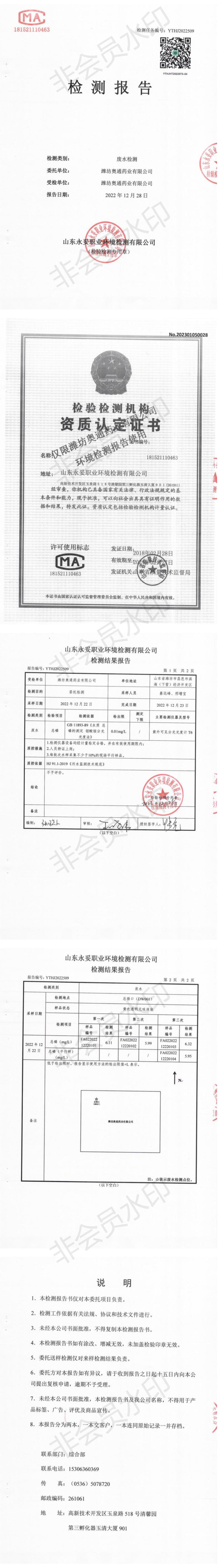濰坊奧通藥業(yè)有限公司十二月環(huán)境檢測報告