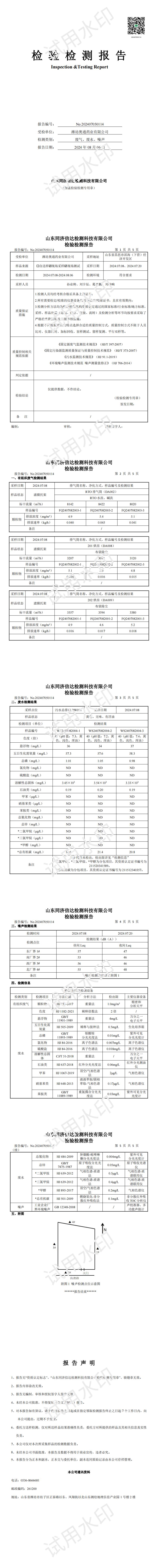 濰坊奧通藥業(yè)有限公司七月環(huán)境檢測報告